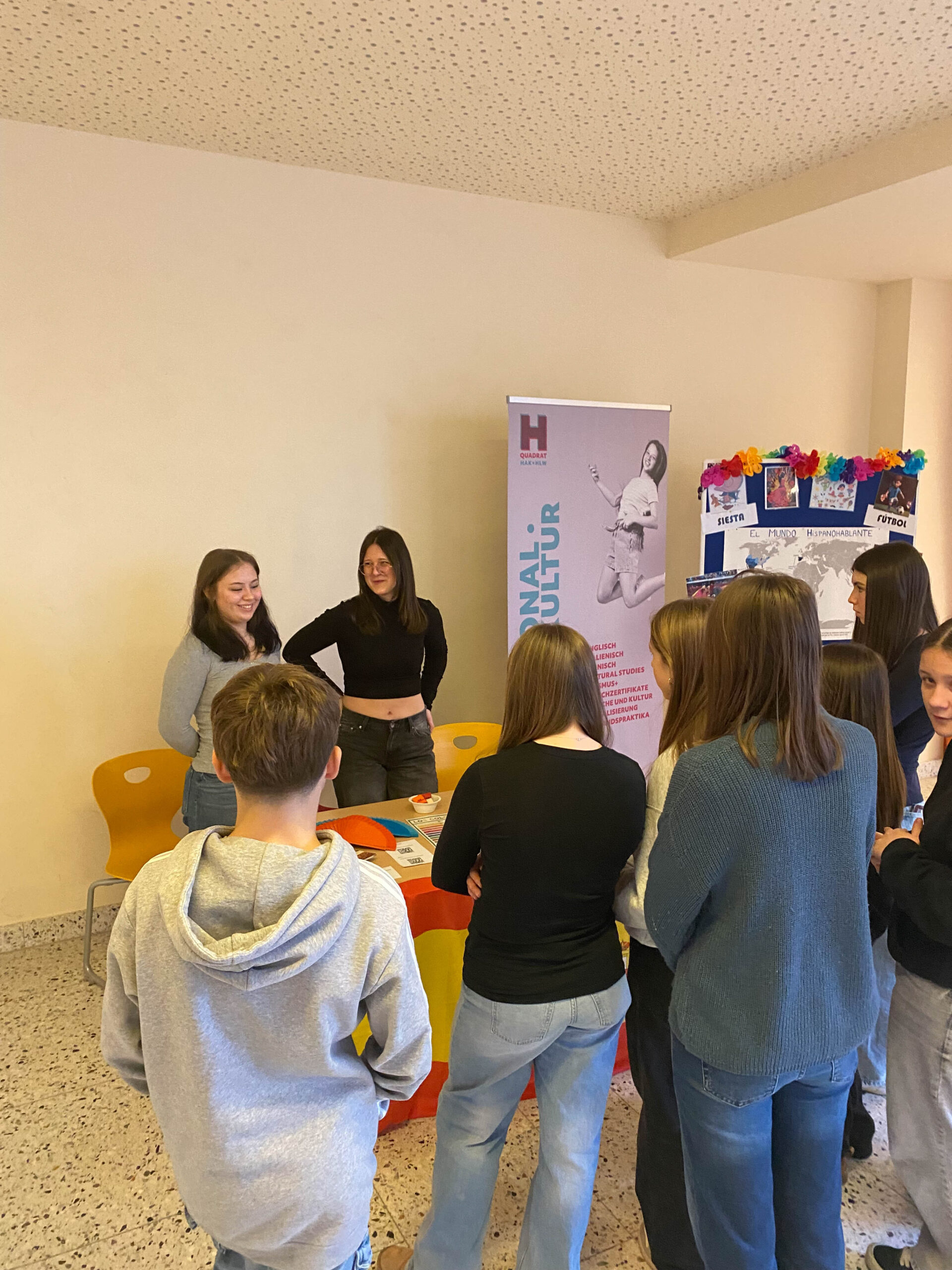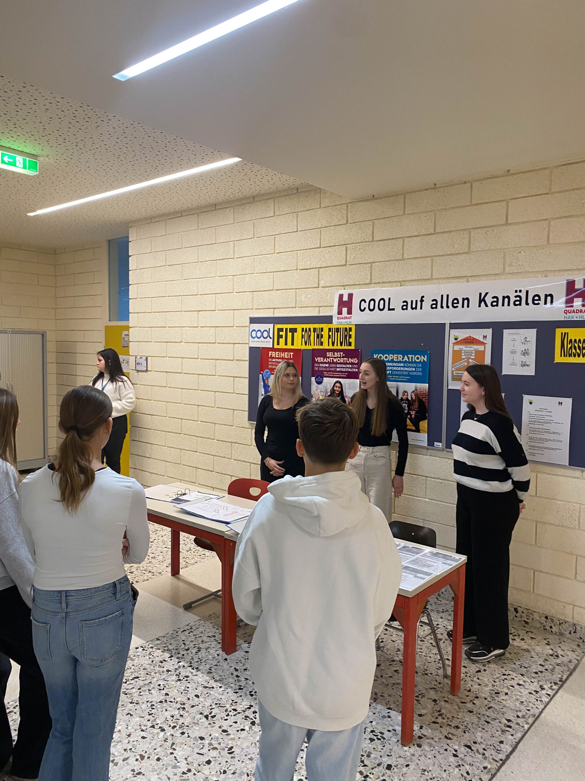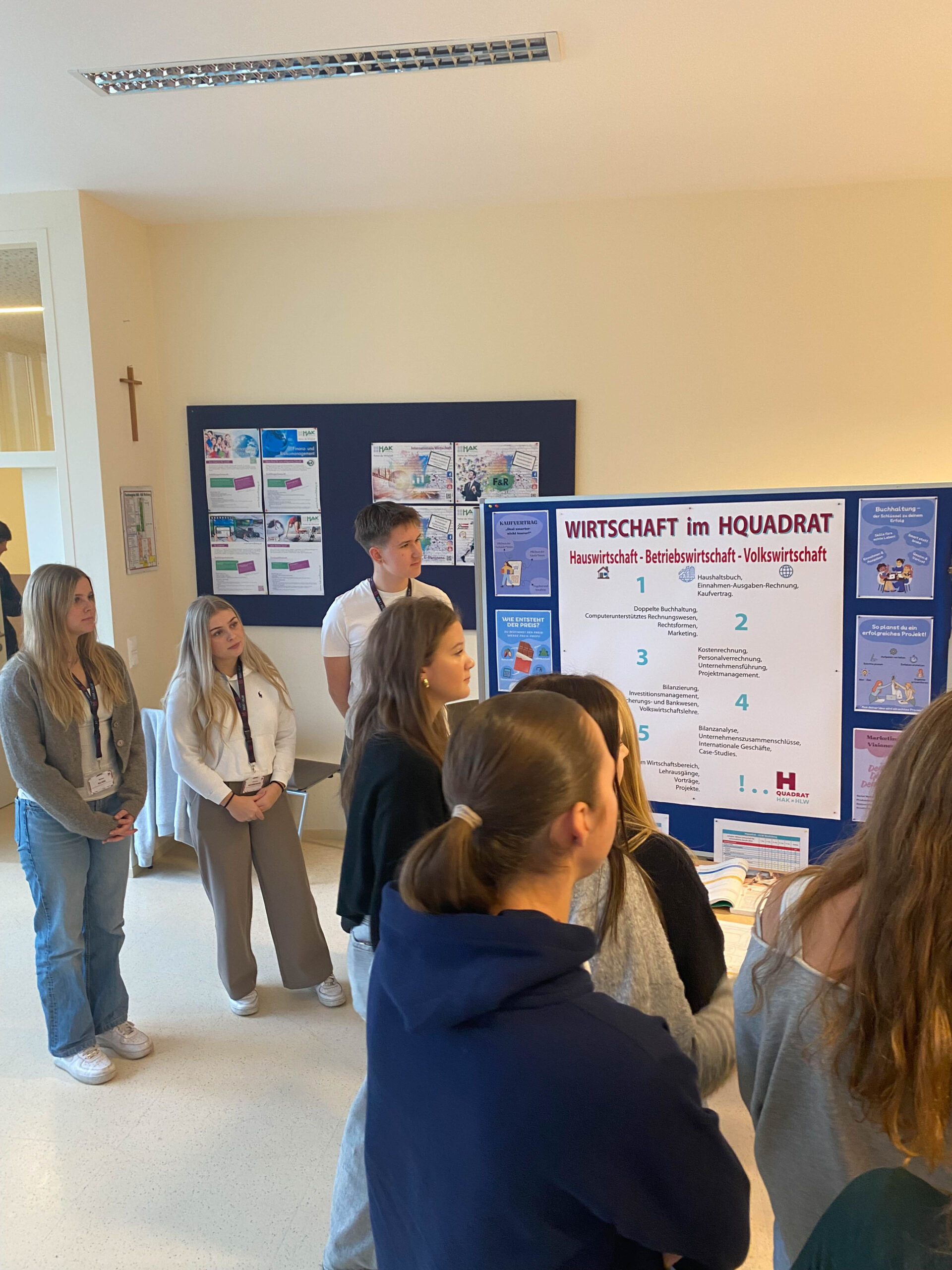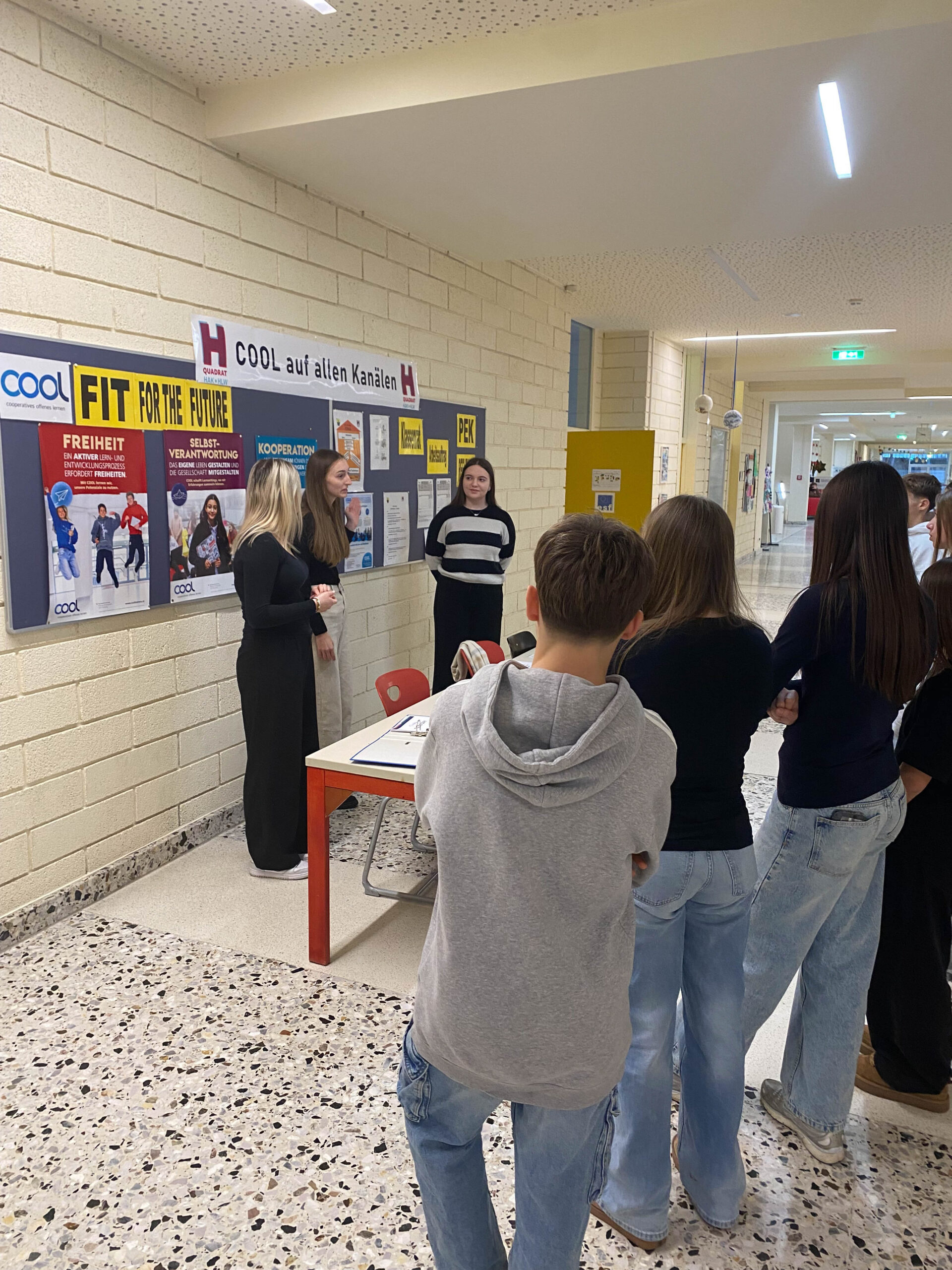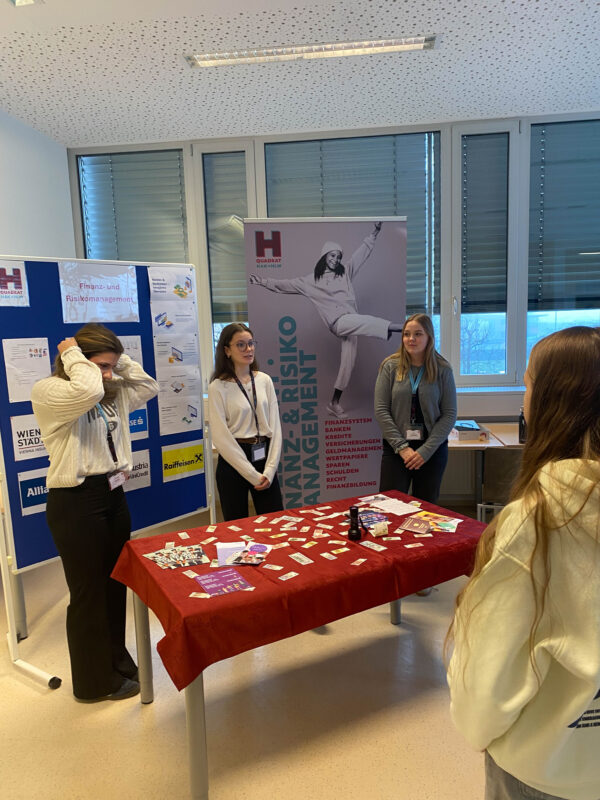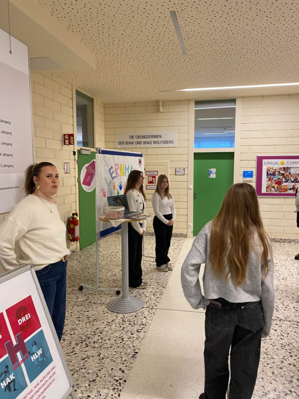 Danach wurde in geführten Kleingruppen jeder Schule ein kurzer Besuch abgestattet, sodass sich die Besucher:innen selbst ein Bild von HAK und HLW machen konnten. Am Ende hatten die Jugendlichen noch die Möglichkeit, sich in Form eines Market Place über die fünf Ausbildungsschwerpunkte, MINT und die kommerziellen Fächer zu erkundigen.
