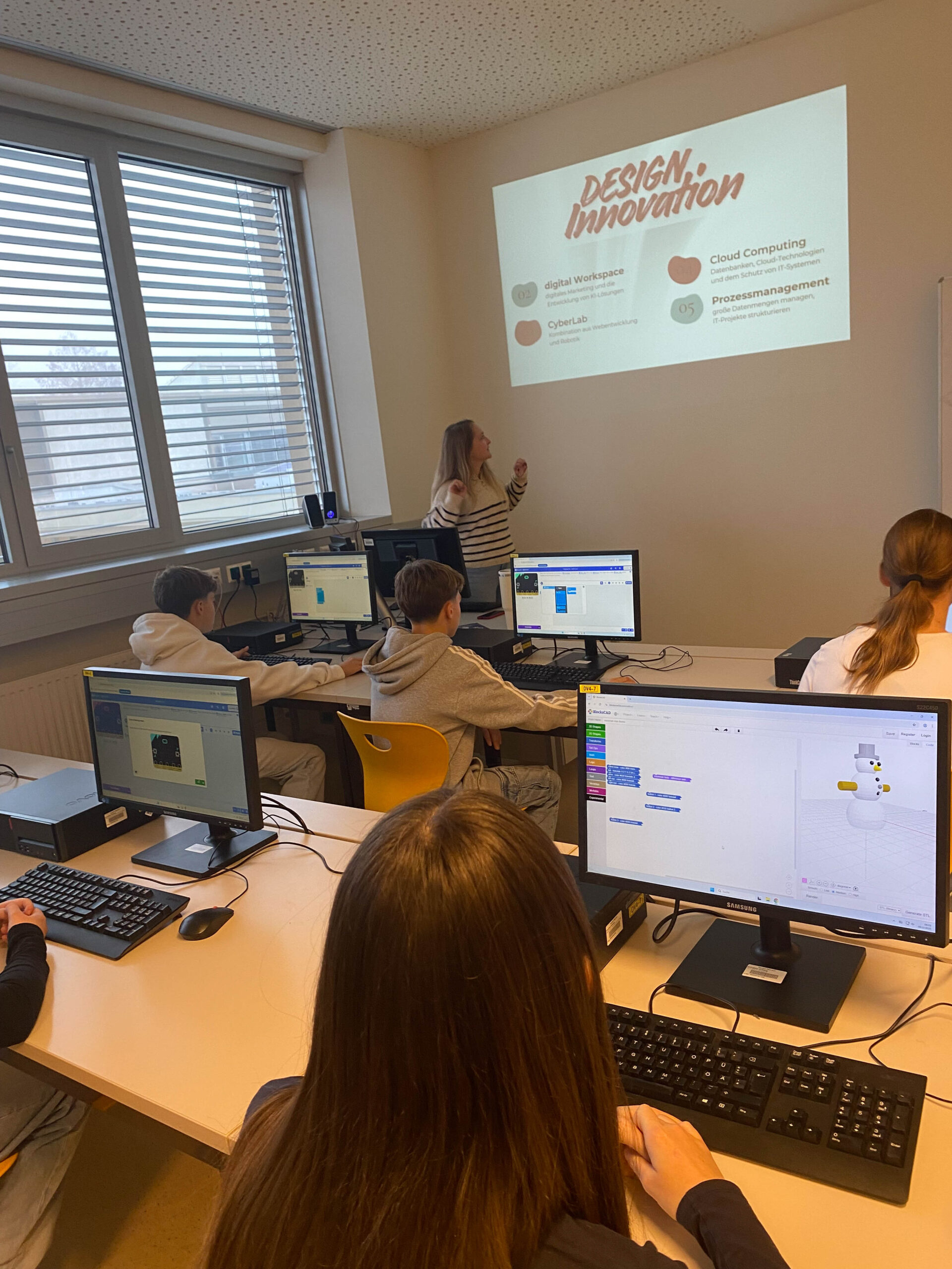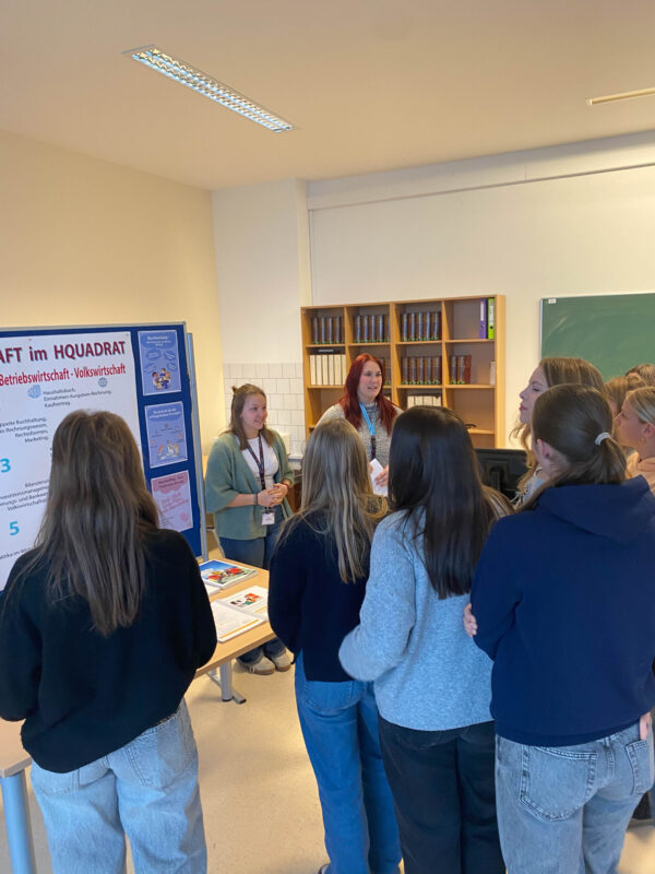 Nach der Begrüßung durch Bereichsleiterin Judith Schöler erhielten die Schüler:innen die wichtigsten Informationen über das Hquadrat und welche speziellen Ausbildungen an beiden Schulen angeboten werden.