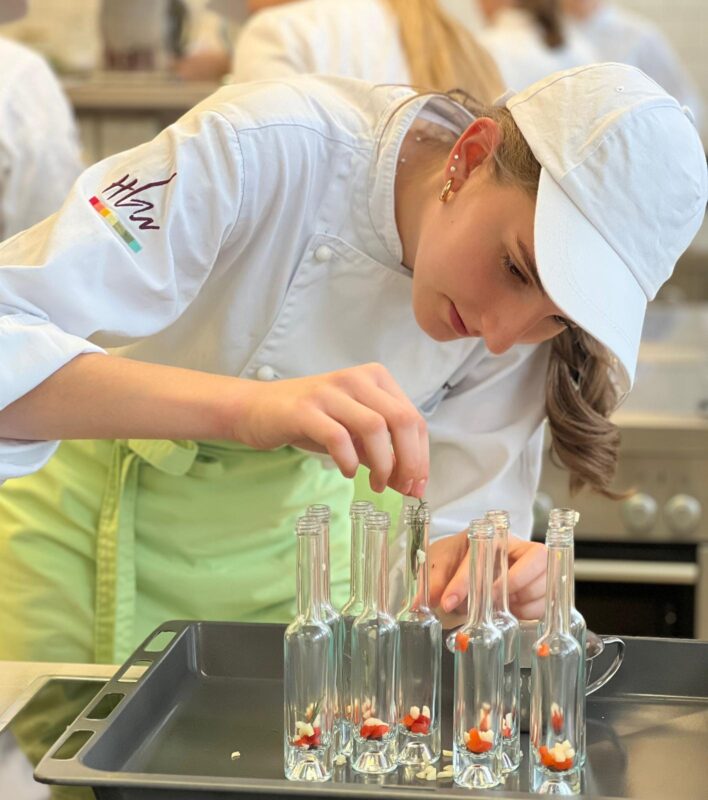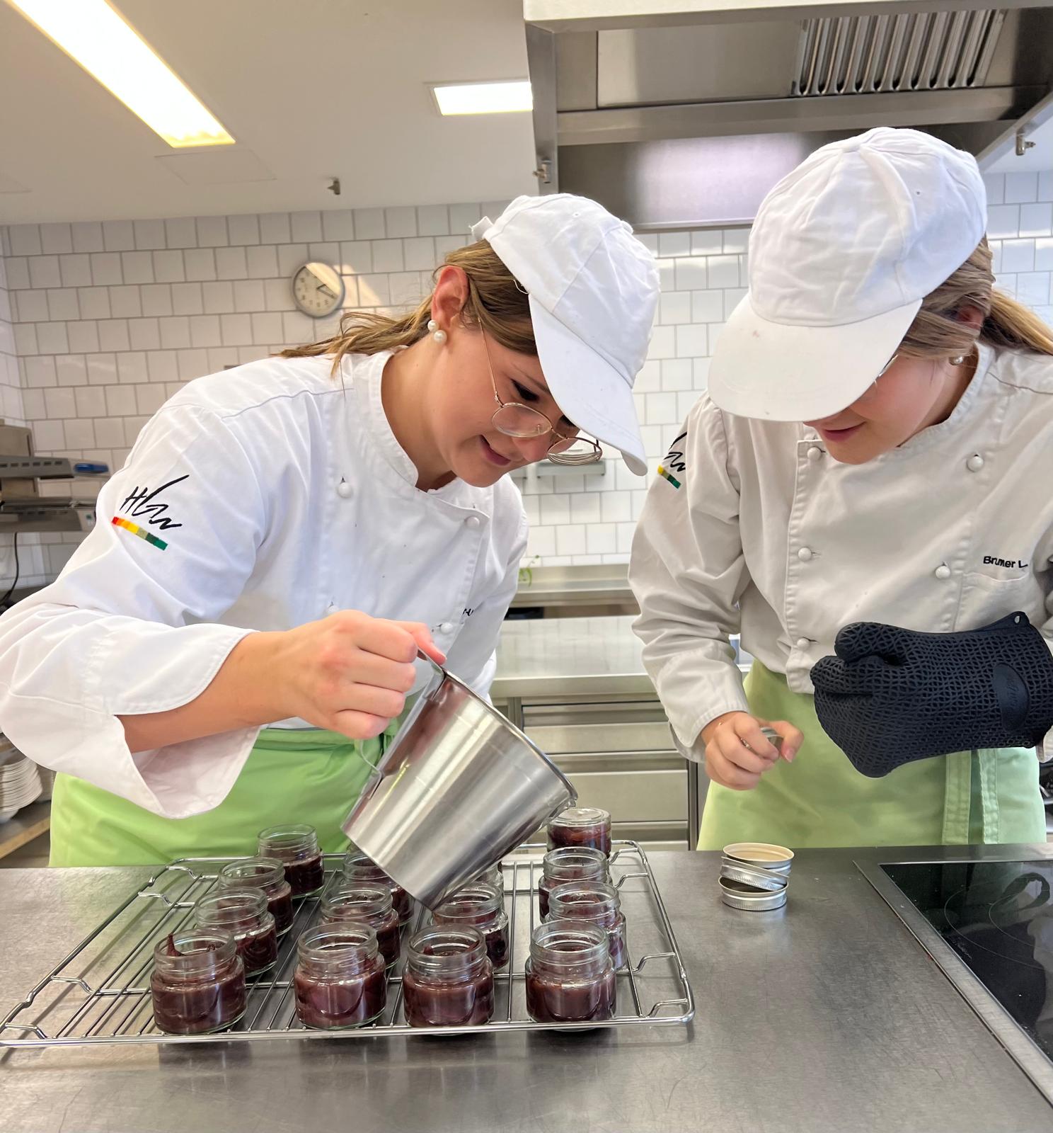 Herbstliche Genussmomente in den HLW-Lehrküchen: Die 4AHW und 4BHW nutzten die goldene Jahreszeit voll aus und verwandelten die Lehrküchen in wahre Genusswerkstätten. Unter dem Motto „Haltbarmachen von Lebensmitteln“ wurde geschnitten, gerührt, gekocht und verkostet. Mithilfe der fachkundigen Anleitung von Prof. Lipp und Prof. Pissaritsch entstanden dabei köstliche Produkte wie Zwetschken-Apfel-Marmelade, Bratapfelkonfitüre, Prosecco-Gelee, Ingwersirup, Kräutersalze, Suppenwürze, Gewürzöle, Rucola-Mandel-Pesto, Paradeiserketchup, Zucchinisalat süß-sauer und Paprikachutney. Herrliche Düfte durchzogen die Räumlichkeiten – ein klarer Beweis dafür, dass nachhaltiges Arbeiten und kulinarischer Genuss perfekt zusammenpassen.